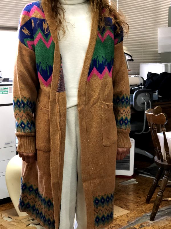 今年はやりのロング丈のカーディガン。 トレンド感バッチリです。