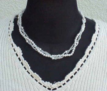 おもにビーズ、パールアクセサリーで特にネックレスを多く作っています。また、ラインスト