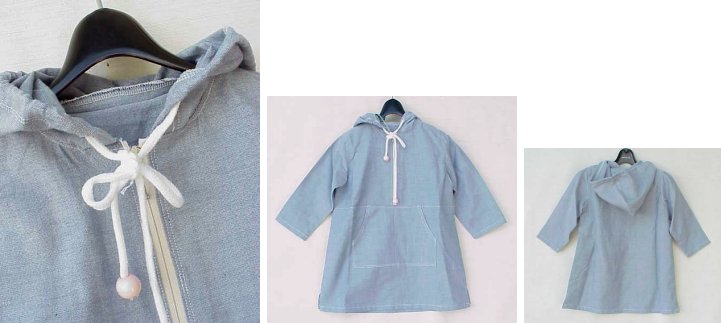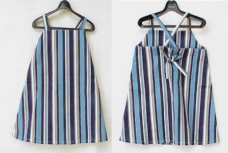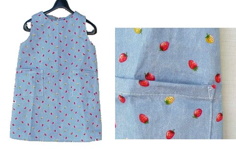 \1,500/■サイズ100、前左右ポケット、ムラ染めのうすい紺にイチゴ柄