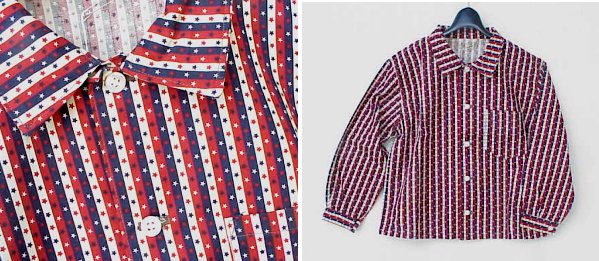 \1,200/■サイズ110、紺・赤・ベージュのストライプに星柄、左胸ポケット