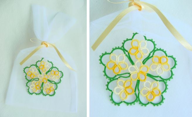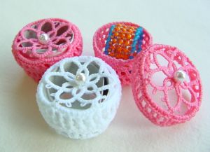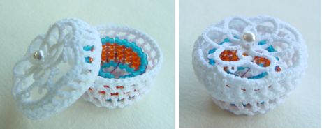 ■普通のレース糸で編んだものを洗濯のりにつけて、型にはめ、乾かしたものです。