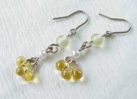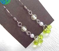 竹ビーズ、ガラスビーズ、ボールチェーンをつなぎあわせて作りました。