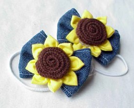 \500/■3.5×5cm、紺のデニム地にひまわり