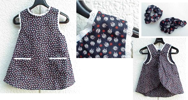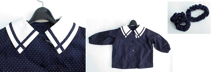 ■シュシュ付き。濃紺水玉地に白い襟がアクセント。大人っぽいコーディネイトはいかがですか?