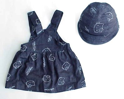 ■人気のキティプリントを使ってみました。ストレッチできやすいです。おそろいの帽子つき。