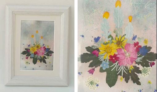 季節の花を使い押し花としていろいろアレンジしてアートしています。(^_^)