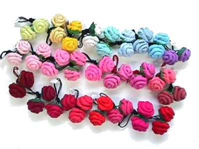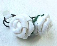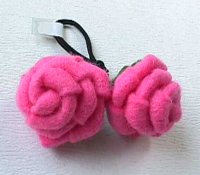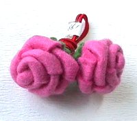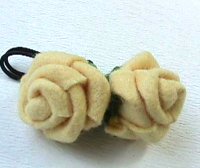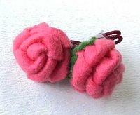 手芸なら何でもOKの中村さんの大得意フェルトのバラの髪飾りです。