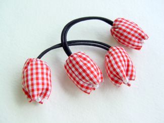 \250/■赤ギンガムチェック、花部分約2.5cm