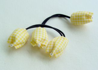 \250/■黄色ギンガムチェック、花部分約2.5cm