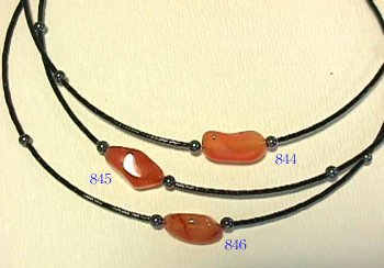オレンジプラスティック、黒シルバービーズ、黒竹ビーズ