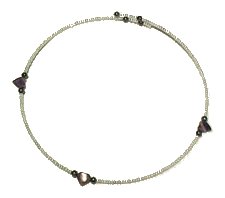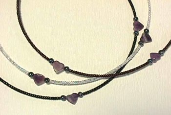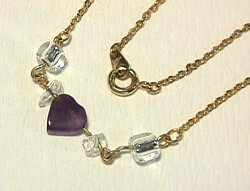 ハート型の紫アメジスト、黒シルバービーズのシンプルで
