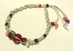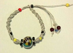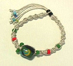 麻ひもで編んだブレスです。まん中のパーツも手作りです。長さ調節できます。